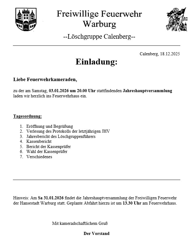 Jahreshauptversammlung der Löschgruppe Calenberg