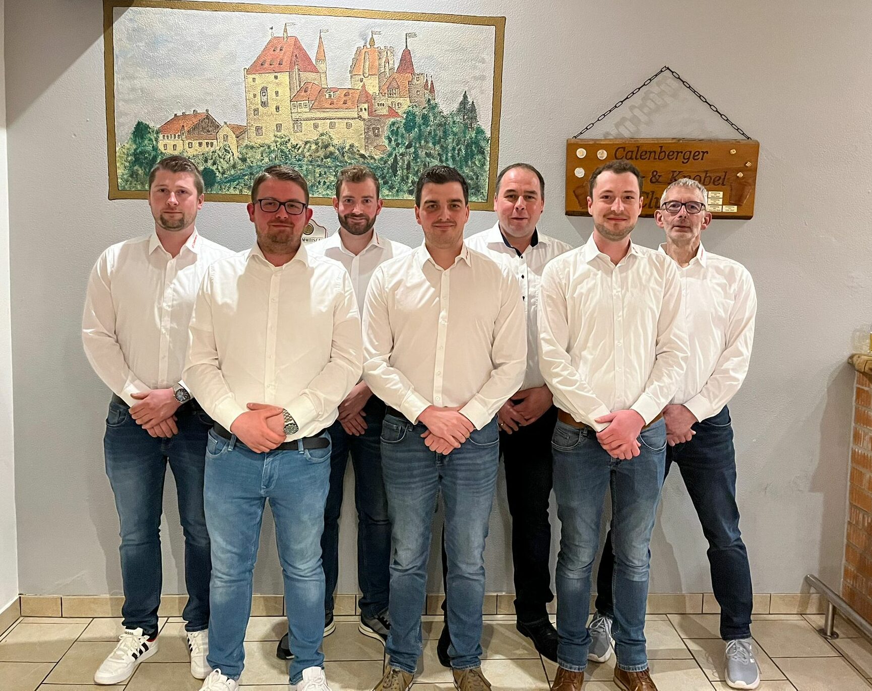 orstand der Sportfreunde Calenberg e.V.: Fussballobmann Christoph Bödeker (v.l.), 2. Vorsitzender Kevin Piepenbrock, 1. Schriftführer Michael Busch, 1. Vorsitzender Christoph Schnückel, 2. Kassierer Maik Wilke, 2. Schriftführer Pascal Skroch und 1. Kassierer Edgar Kirsch